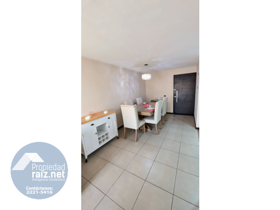 Cuenta con 90 m² de construcción, distribuidos en sala, comedor, cocina equipada con línea blanca y sala familiar.